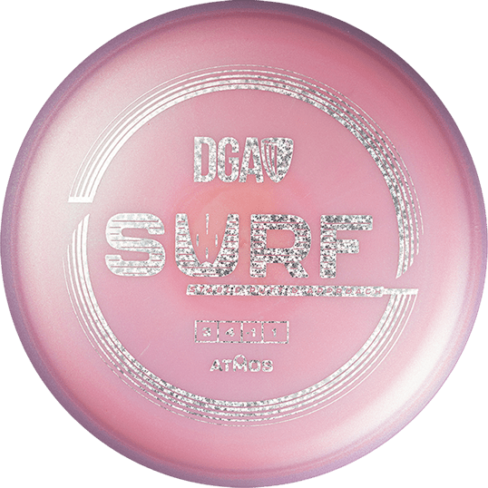The DGA Surf is a stable putt & approach disc that is beadless and fairly shallow with a neutral flight. This disc will hold just about any line you throw it on, providing pinpoint accuracy on upshots and putts.