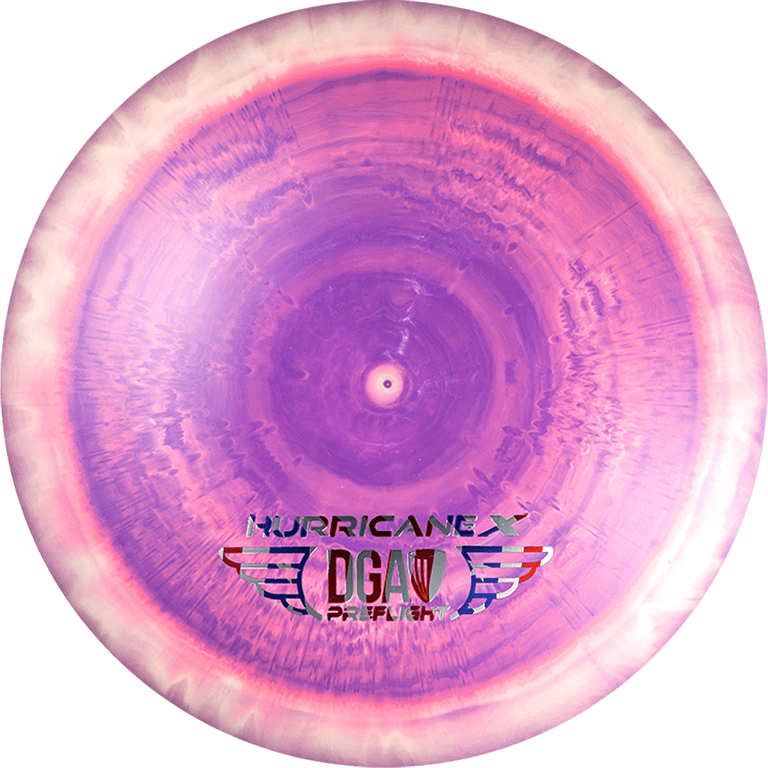 The new DGA Hurricane X is a very overstable distance driver that has a high amount of torque resistance even at faster speeds while maintaining glide and has a forward-pushing but consistent fade. Perfect for both backhand and forehand throwers!